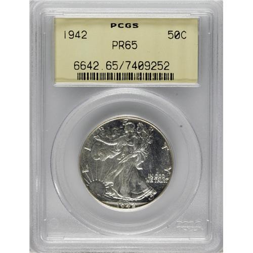 1942 50C PR65 PCGS. A sharp strike characterizes the m