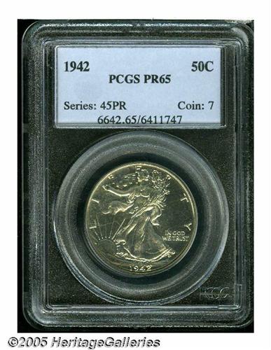 <B>1942<50C> PR65 PCGS.</B></I> The design elements are crisply impressed throughout, with a fully original overall appearance, and both sides display watery, highly reflective fields. The bright, shimmering surfaces are devoid of distracting blemishes.