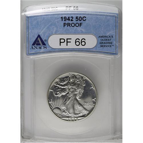 <B>1942<50C> PR66 ANACS.</B></I> A lovely Gem Proof with exceptional silver surfaces and light cameo contrast.