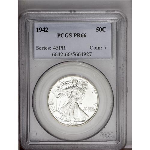 1942 50C PR66 PCGS. A brilliant, crisply struck, and u 1942[50C] PR66 PCGS.