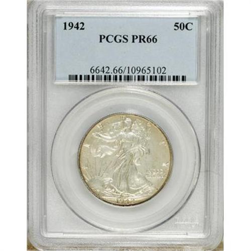 <B>1942 50C PR66 PCGS.</B></I> An excellent strike, as befits a Premium Gem proof. Each side displays light milky color, with some light multicolored patina on the reverse. Well preserved throughout.<BR><BR><b>Shipping:</b> Coins & Currency (<a target="_blank" href="http://www.heritageauctions.com/common/shipping.php">view shipping information</a>)