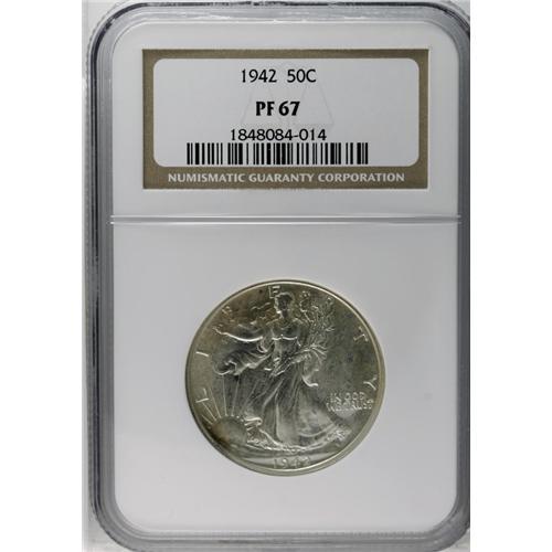 1942 50C PR67 NGC. A milky patina, with hints of gold