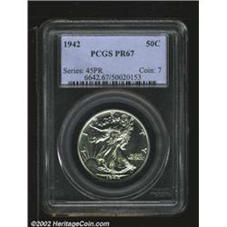 1942 50C PR67 PCGS. A brilliant Superb Gem that has seemingly unimprovable surfaces. 1942 was the fi