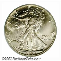 1942 50C PR67 PCGS. A spectacular proof Half, the brilliant surfaces are as nearly flawless as any we have seen. Important notice: We expect to be auctioning lots at the rate of 200-250 per hour. Sometimes eBay Premier live bid software cannot keep up with that pace, so we strongly recommend that you place a realistic proxy bid now as insurance to avoid disappointment. Also please note that all Heritage/CAA lots purchased through eBay Premier carry a 20% Buyer's Premium. Please make sure you read the Terms and Conditions.