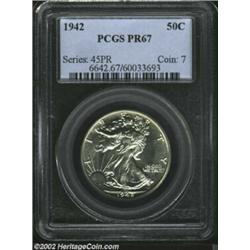 1942 50C PR67 PCGS. A spectacular proof Half, the brilliant surfaces are as nearly flawless as any w
