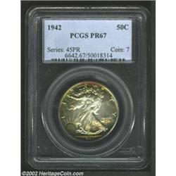 1942 50C PR67 PCGS. Bright overall and highly reflective in the fields, the brilliant centers are su