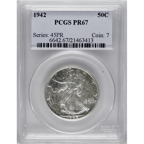1942 50C PR67 PCGS. Exactingly struck and marvelously