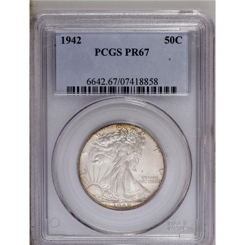 1942 50C PR67 PCGS. Gold-tinged borders frame powder-b