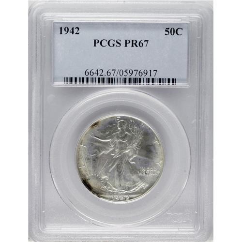 1942 50C PR67 PCGS. This Superb Gem is modestly reflec