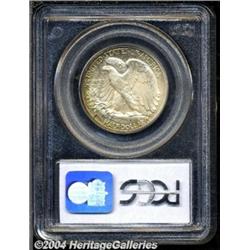 <B>1942<50C> PR67 PCGS.</B></I> Well struck with milky toning and somewhat subdued reflectivity in the fields, lovely red, yellow, and olive patina near the borders, and a single noticeable contact mark, near the reverse center. <BR><BR><B>Important notice:</B> Heritage usually auctions material at the rate of 200-250 lots per hour. On some occasions eBay Live bid software or the Internet may not be able to keep up with the pace of the auction. We recommend placing a realistic absentee bid now as insurance to avoid disappointment. Occasionally the auctioneer may eliminate or reject an eBay Live bid, and the auctioneer may also reopen a lot after the close of the eBay live bidding (usually because we missed an audience bid), and may reject your bid even if it shows you as the winning bidder. By bidding via eBay Live, you agree that Heritage may award the lot to another bidder at its sole discretion under the circumstances described above or any other reasonable circumstances. Since eBay bids are not shown to us until we open the lot on the floor, we treat those bids just like floor bids. In most cases the floor responds before the eBay bid is presented to us, due to Internet lag time, so for consistency we have made it a policy that floor bids are always considered first over tie eBay live bids. Also please note that all Heritage lots purchased through eBay Live carry a 20% Buyer's Premium. Please make sure you read the Terms and Conditions before you bid. </span></font></tr></table></td></tr></table>