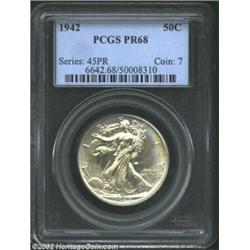 1942 50C PR68 PCGS. A needle-sharp Superb Gem whose originality is ensured by the light but milky ta