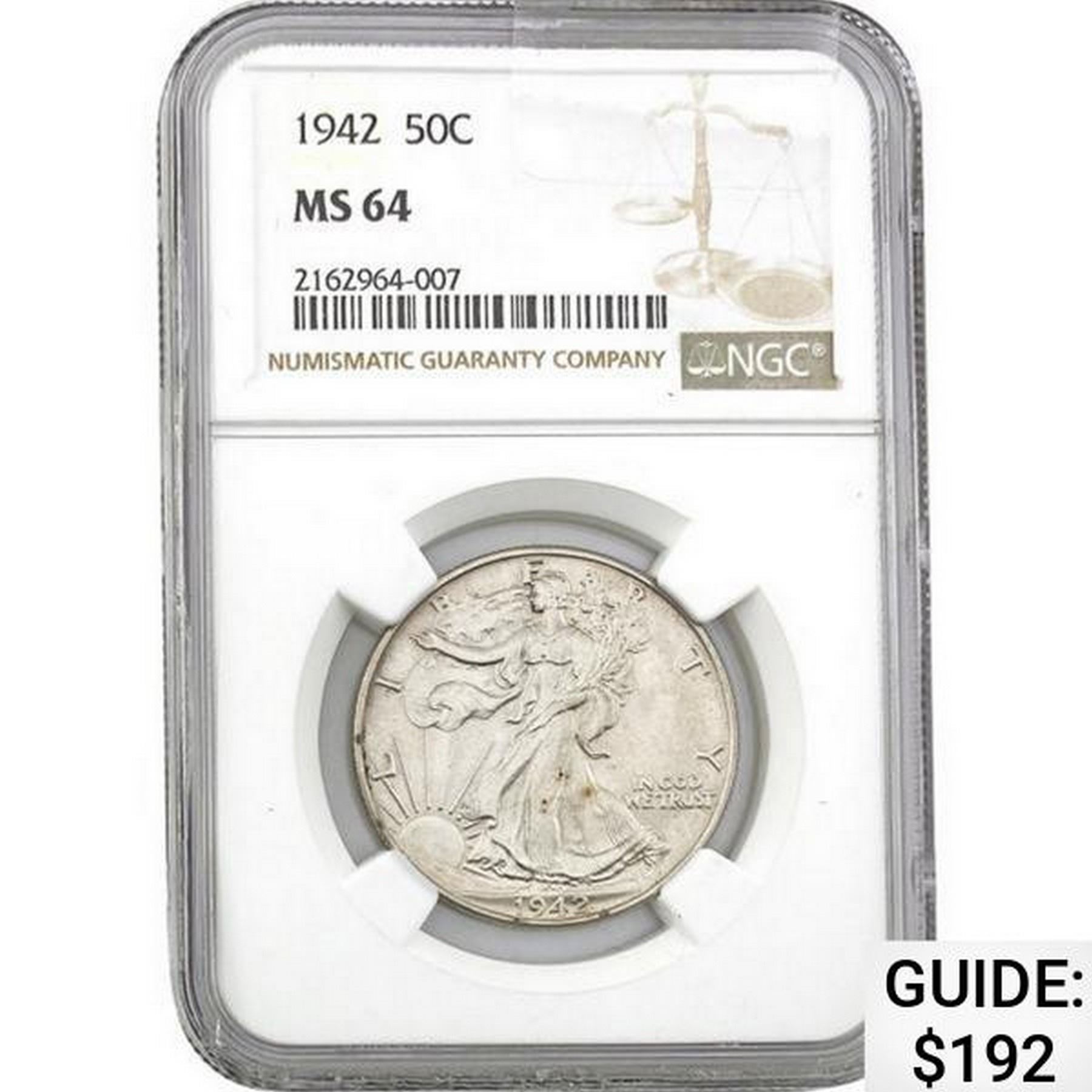 1942 50C Walking Liberty Half Dollar NGC MS64