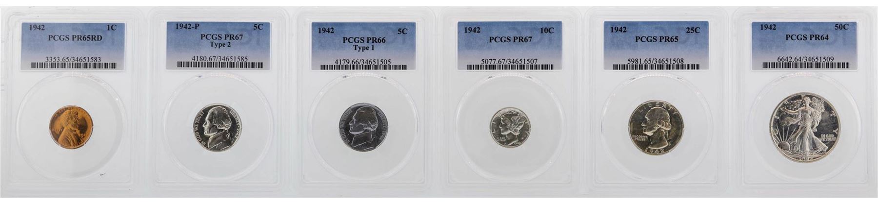One 1942 (6) Coin Proof Set PCGS Graded PR64/65/66/67. PCGS Graded.