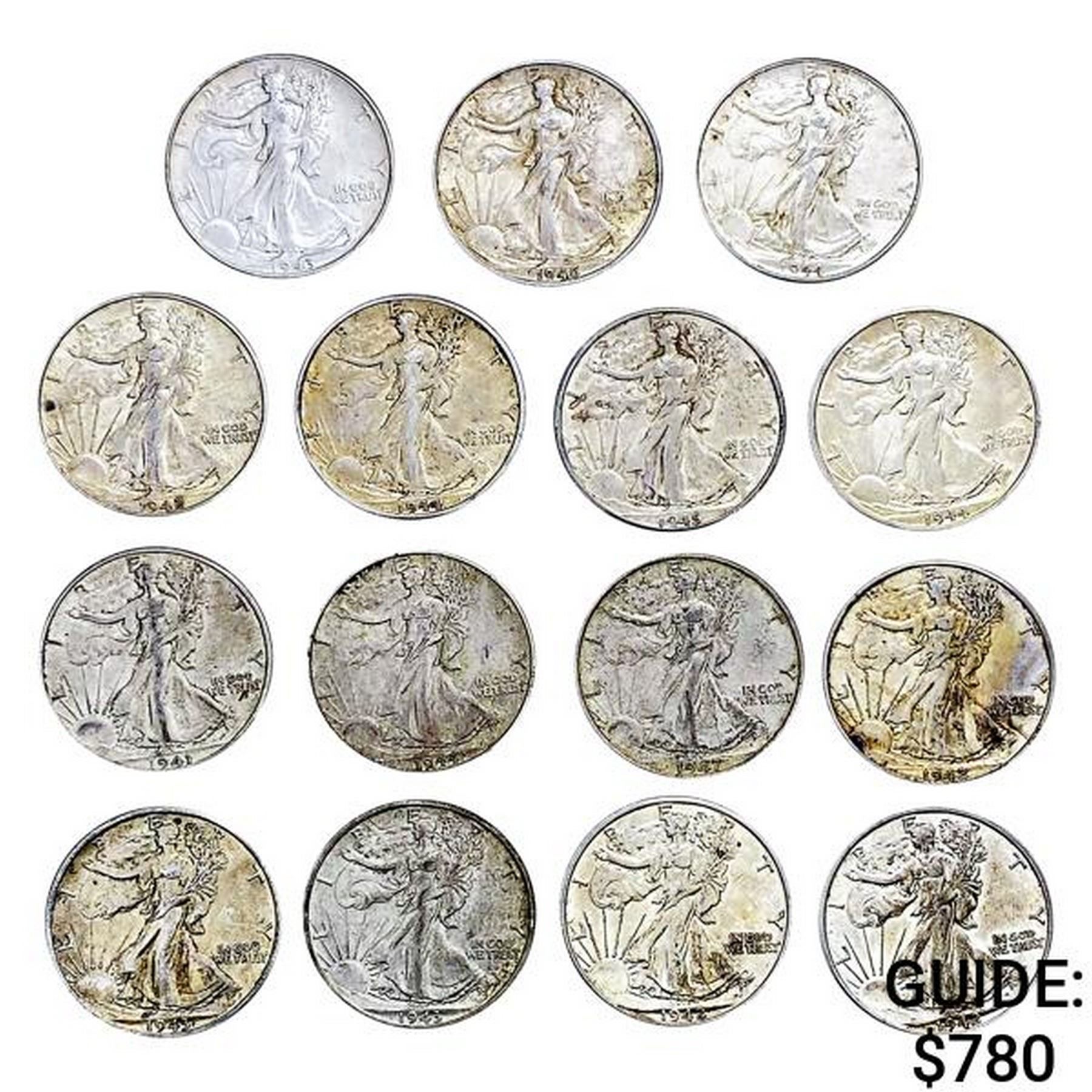 1942 AU Partial Roll of Walking Lib. Halves [15 Co