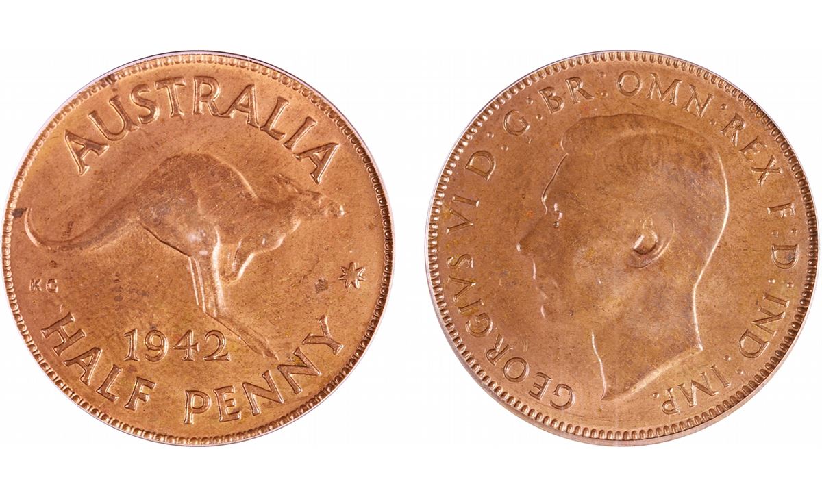 1942 Australian KGVI Half Penny - PCGS MS 64RB