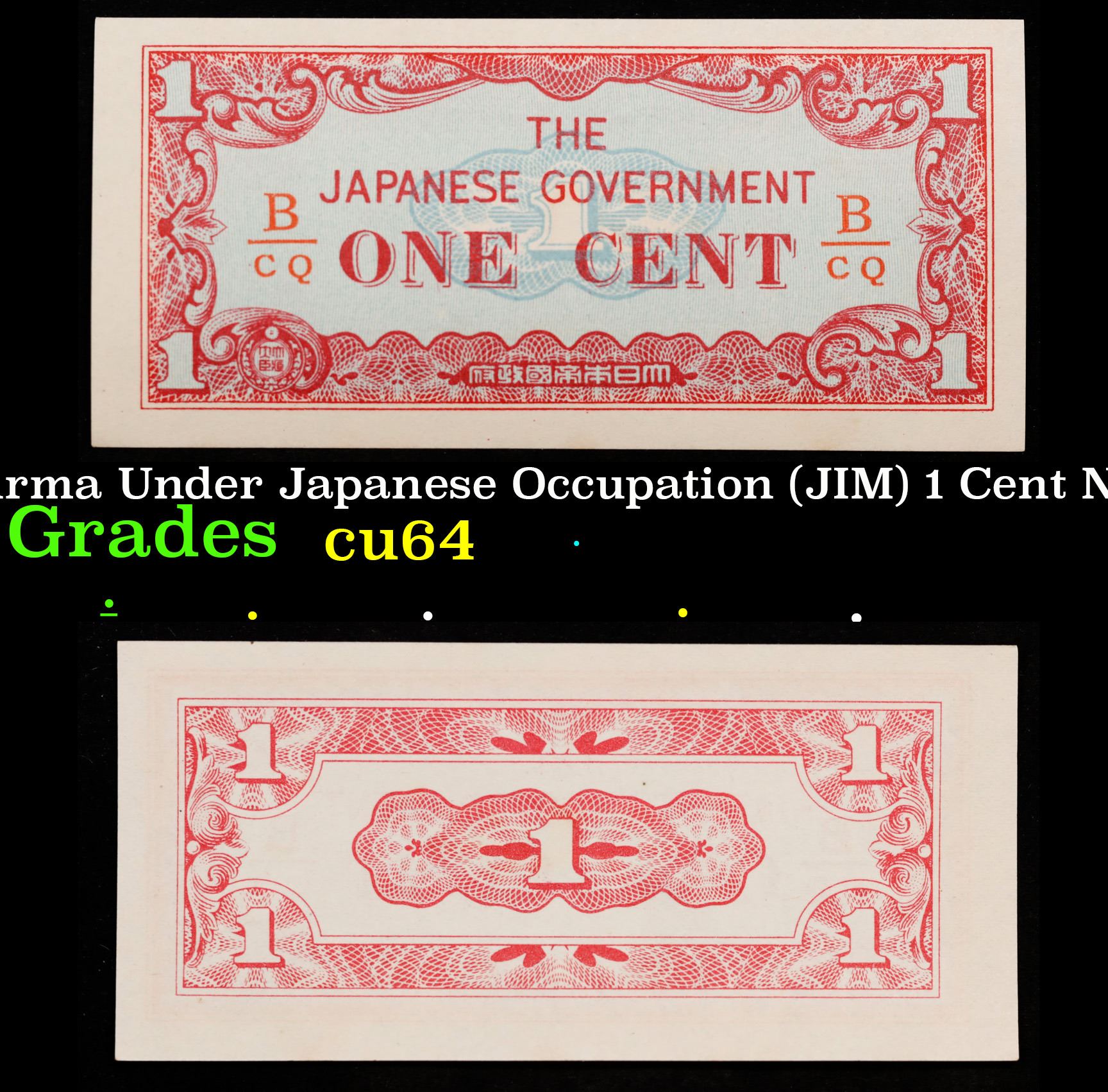 1942 Burma Under Japanese Occupation (JIM) 1 Cent Note P# 9B Grades Choice CU. Japanese invasion money, officially known as Southern Development Bank Notes (Japanese: ??????? Dai T?-A Sens? gunpy?, "Greater East Asia War military scrip"), was currency issued by the Japanese Military Authority as a replacement for local currency after the conquest of colonies and other states in World War II. Japan printed this currency for many countries, including Malaysia, Singapore, North Borneo, Sarawak, Burma, Brunei, and several Oceania territories controlled by Australia.