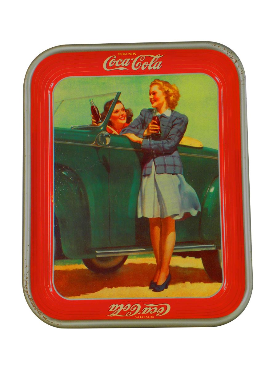 1942 Coca Cola Tin Serving Tray. A few chips on lower left and upper right edges and some minor scratches on image otherwise good condition. 10 1/2 X 13 1/4 inches.