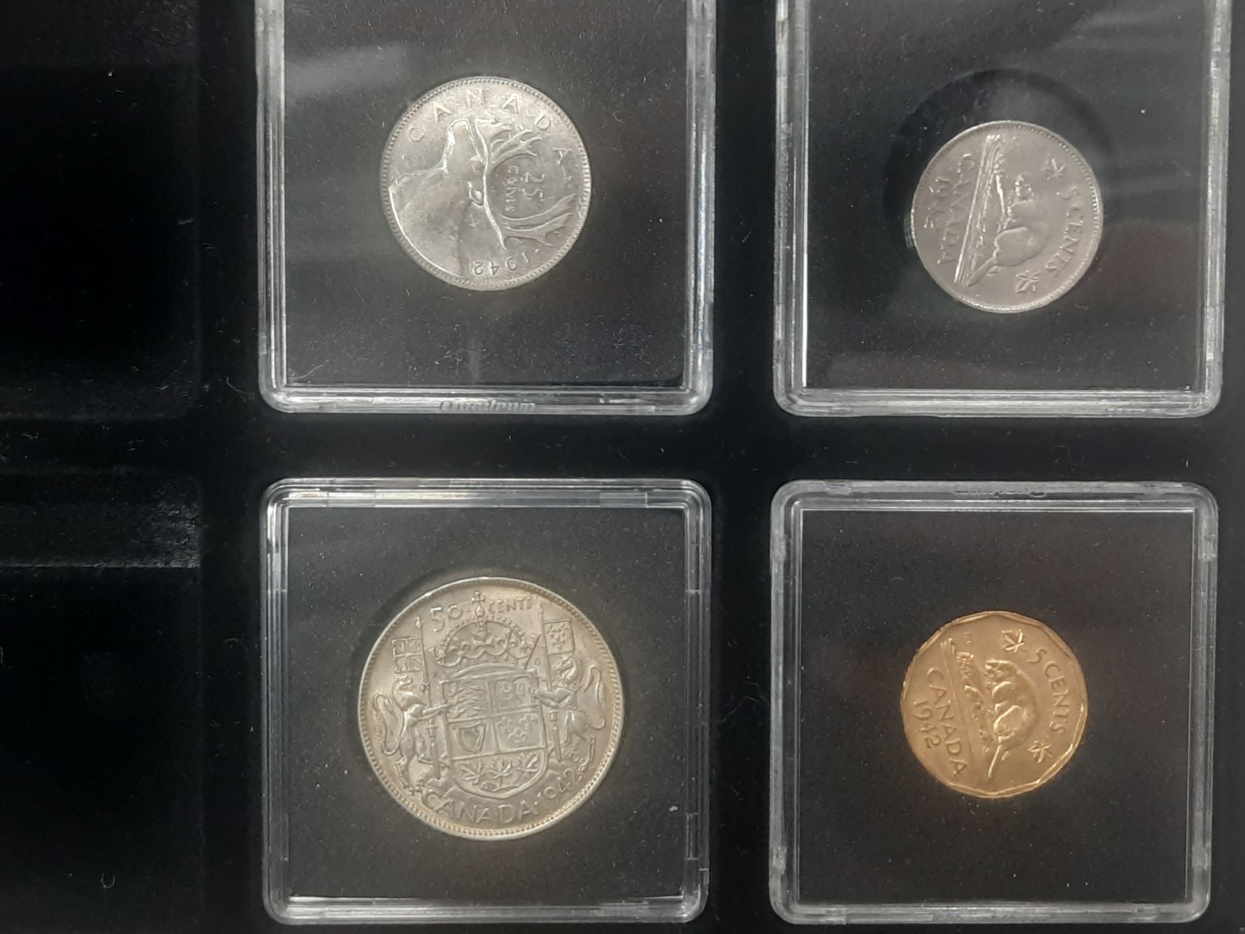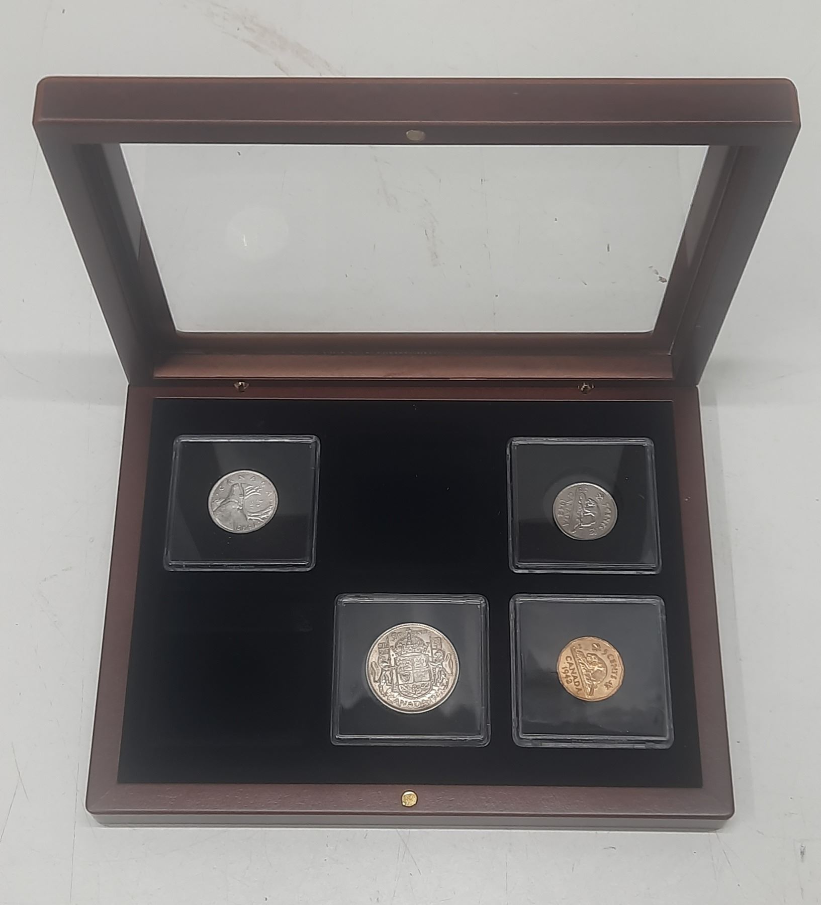 1942 Coin Set in Wood and Glass Display Box.