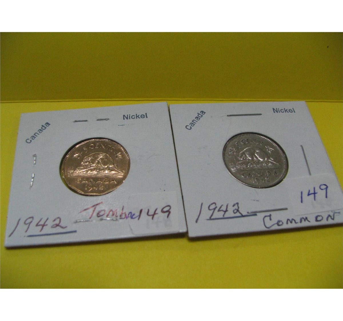 1942 Common, 1942 Tombac Cdn. Five Cent Pcs.