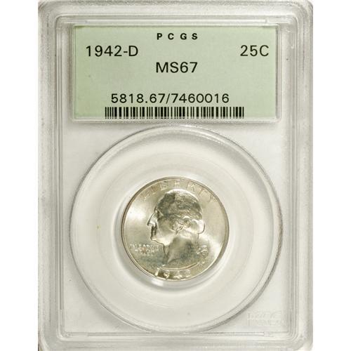 1942-D 25C MS67 PCGS. Well struck with glistening, int