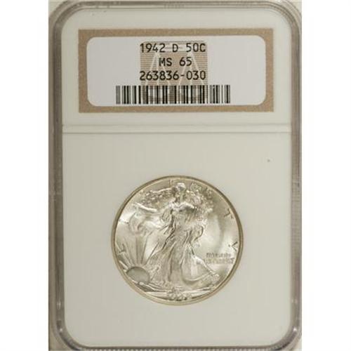 1942-D 50C MS65 NGC. NGC Census: (1262/855). PCGS