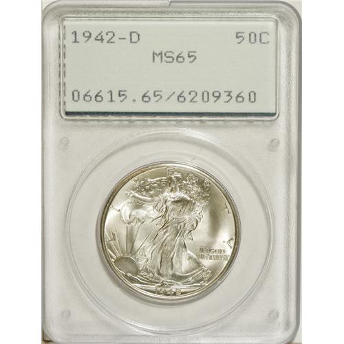 1942-D 50C MS65 PCGS. PCGS Population (2249/1035).