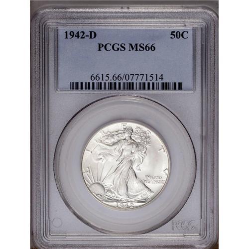 1942-D 50C MS66 PCGS. Well struck with icy-white surfa 1942-D[50C] MS66 PCGS.