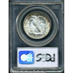 <B>1942-D<50C> MS66 PCGS.</B></I> Lustrous example with variegated deep red toning in the peripheries. A little weakly struck on selected highpoints, but none the less pleasing and attractive. <BR><BR><B>Important notice:</B> Heritage usually auctions material at the rate of 200-250 lots per hour. On some occasions eBay Live bid software or the Internet may not be able to keep up with the pace of the auction. We recommend placing a realistic absentee bid now as insurance to avoid disappointment. Occasionally the auctioneer may eliminate or reject an eBay Live bid, and the auctioneer may also reopen a lot after the close of the eBay live bidding (usually because we missed an audience bid), and may reject your bid even if it shows you as the winning bidder. By bidding via eBay Live, you agree that Heritage may award the lot to another bidder at its sole discretion under the circumstances described above or any other reasonable circumstances. Since eBay bids are not shown to us until we open the lot on the floor, we treat those bids just like floor bids. In most cases the floor responds before the eBay bid is presented to us, due to Internet lag time, so for consistency we have made it a policy that floor bids are always considered first over tie eBay live bids. Also please note that all Heritage lots purchased through eBay Live carry a 20% Buyer's Premium. Please make sure you read the Terms and Conditions before you bid. </span></font></tr></table></td></tr></table>