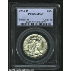 1942-D 50C MS67 PCGS. Virtually unsurpassable at the major grading services, this richly frosted exa