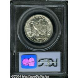 <B>1942-D<50C> MS67 PCGS.</B></I> A true wonder coin, this half dollar has a radiant mint bloom, is exceptionally struck, and has no easily noticeable abrasions that take ones eye away from the beauty of this coin's design. Upon inspection with a loupe, the mint mark is also clearly repunched. <BR><BR><B>Important notice:</B> Heritage usually auctions material at the rate of 200-250 lots per hour. On some occasions eBay Live bid software or the Internet may not be able to keep up with the pace of the auction. We recommend placing a realistic absentee bid now as insurance to avoid disappointment. Occasionally the auctioneer may eliminate or reject an eBay Live bid, and the auctioneer may also reopen a lot after the close of the eBay live bidding (usually because we missed an audience bid), and may reject your bid even if it shows you as the winning bidder. By bidding via eBay Live, you agree that Heritage may award the lot to another bidder at its sole discretion under the circumstances described above or any other reasonable circumstances. Since eBay bids are not shown to us until we open the lot on the floor, we treat those bids just like floor bids. In most cases the floor responds before the eBay bid is presented to us, due to Internet lag time, so for consistency we have made it a policy that floor bids are always considered first over tie eBay live bids. Also please note that all Heritage lots purchased through eBay Live carry a 20% Buyer's Premium. Please make sure you read the Terms and Conditions before you bid. </span></font></tr></table></td></tr></table>