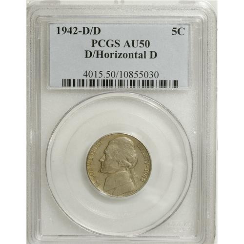 1942-D 5C D Over Horizontal D AU50 PCGS. PCGS Populati