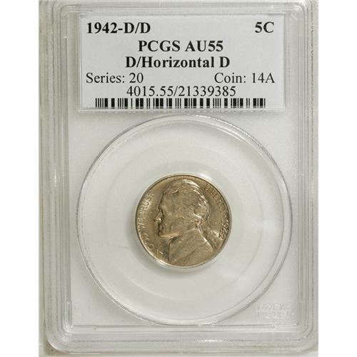 1942-D 5C D Over Horizontal D AU55 PCGS. PCGS Popu