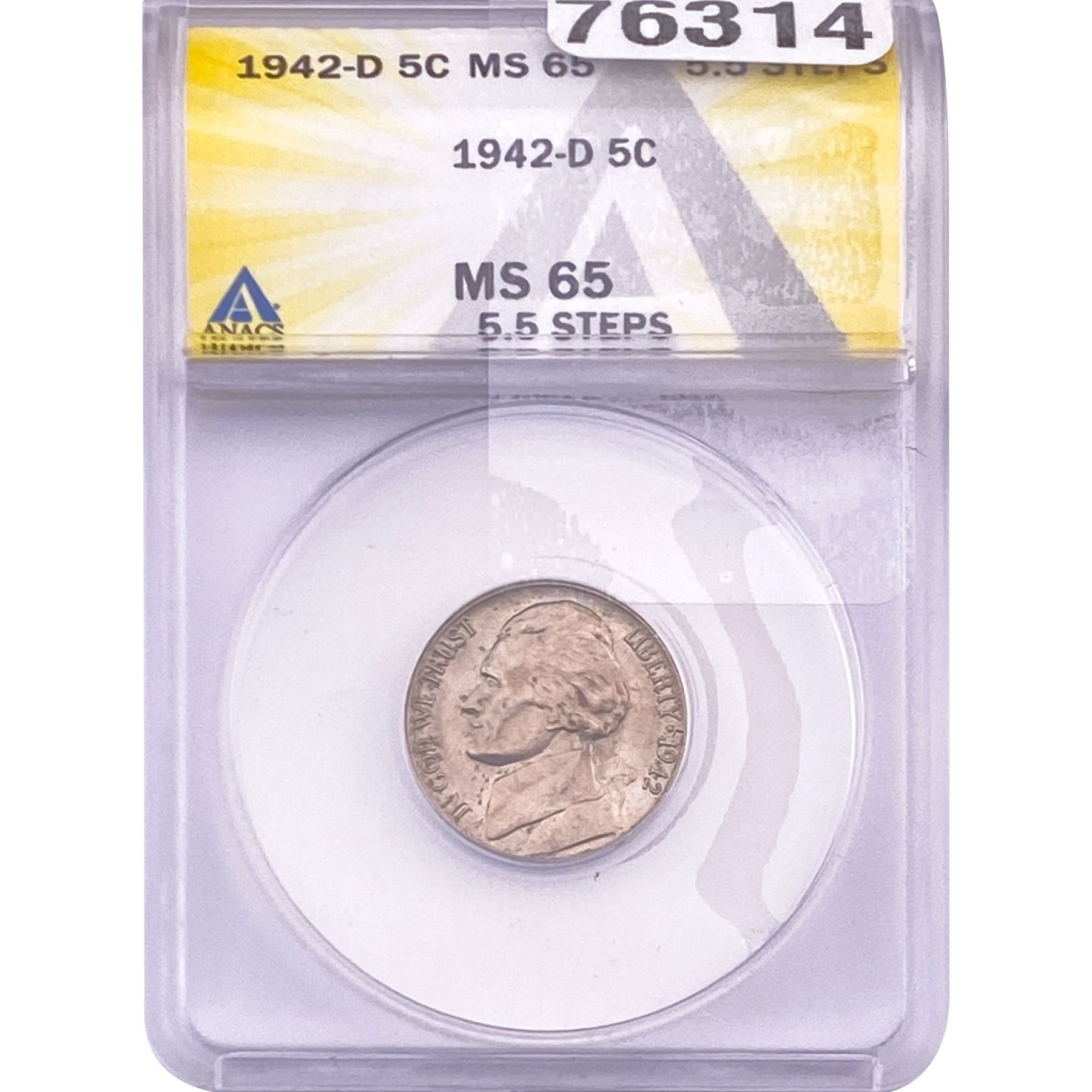 1942-D Jefferson Nickel ANACS MS65 5.5 Steps