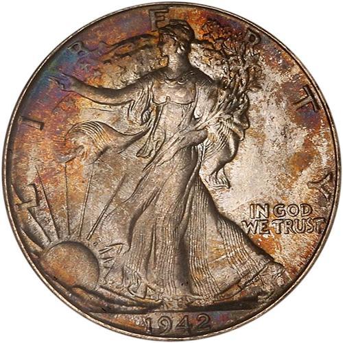 A fully struck gem coin, with grey-gold and blue toning on the obverse and a subdued satin reverse. Bids $975 but a clearly superior example of the date.