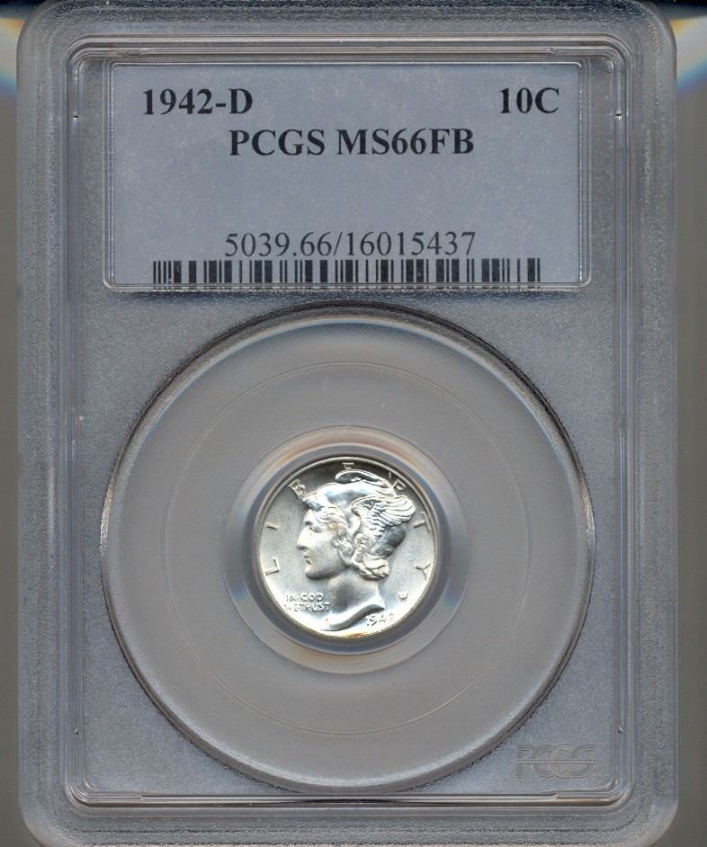 One 1942-D Mercury Dime Coin PCGS MS66FB.