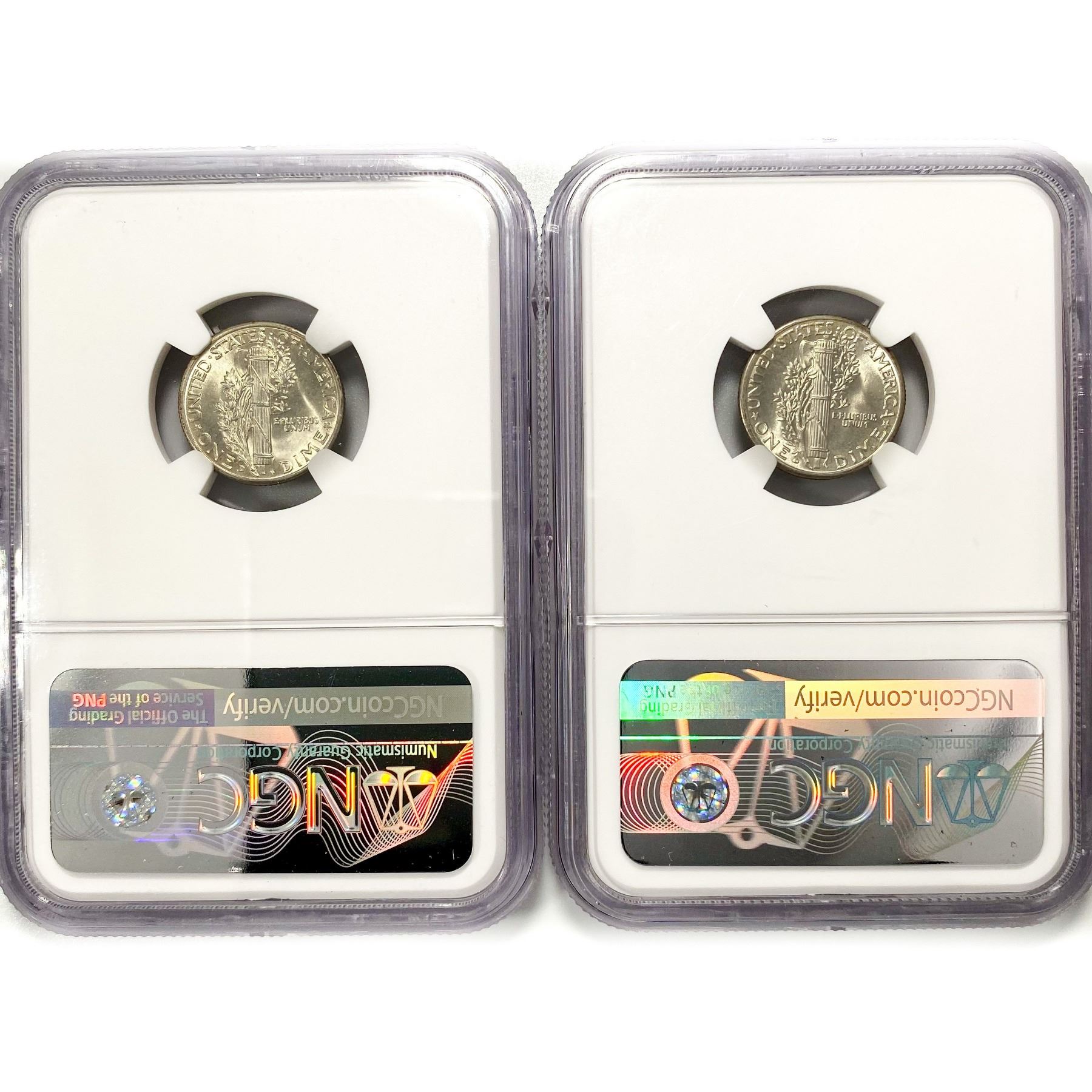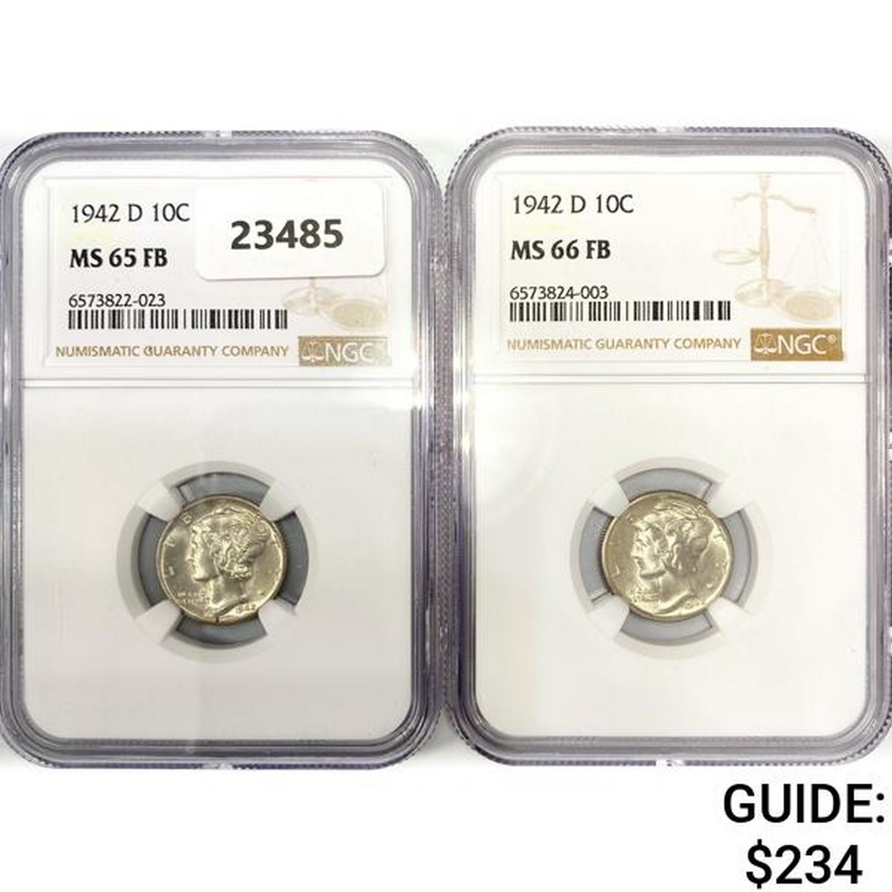 1942-D Set (2) Mercury Silver Dime NGC MS65 FB