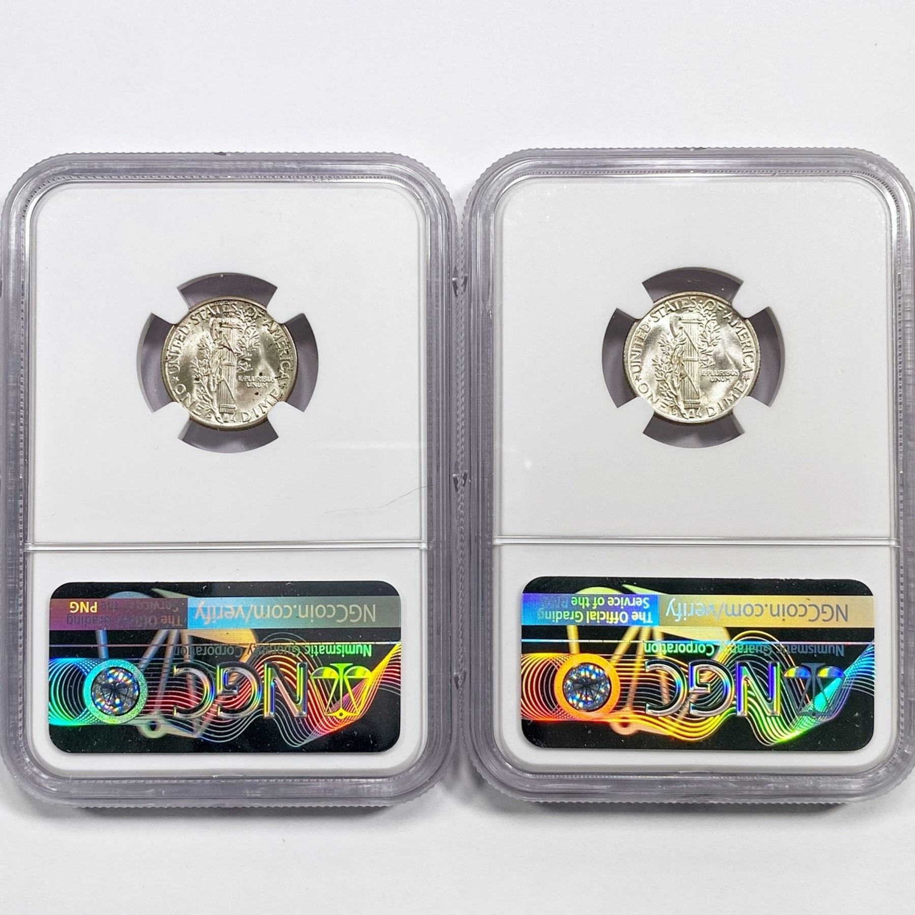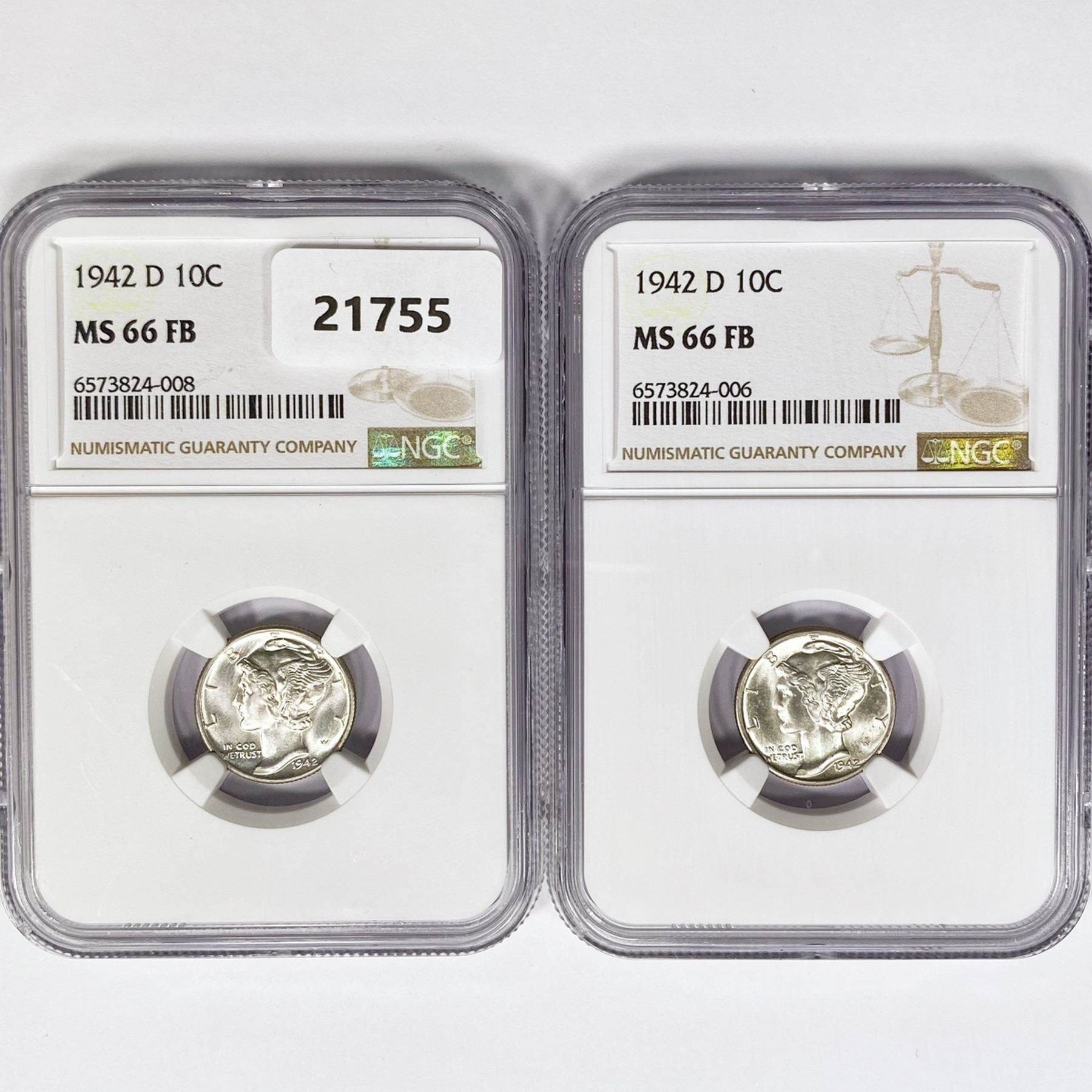 1942-D Set (2) Mercury Silver Dime NGC MS66 FB