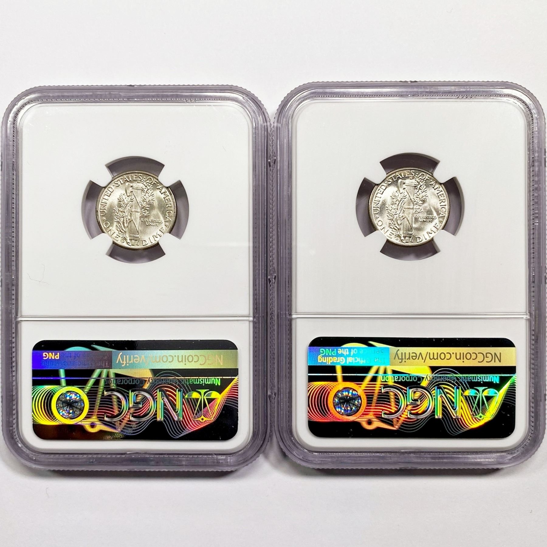 1942-D Set (2) Mercury Silver Dime NGC MS66 FB