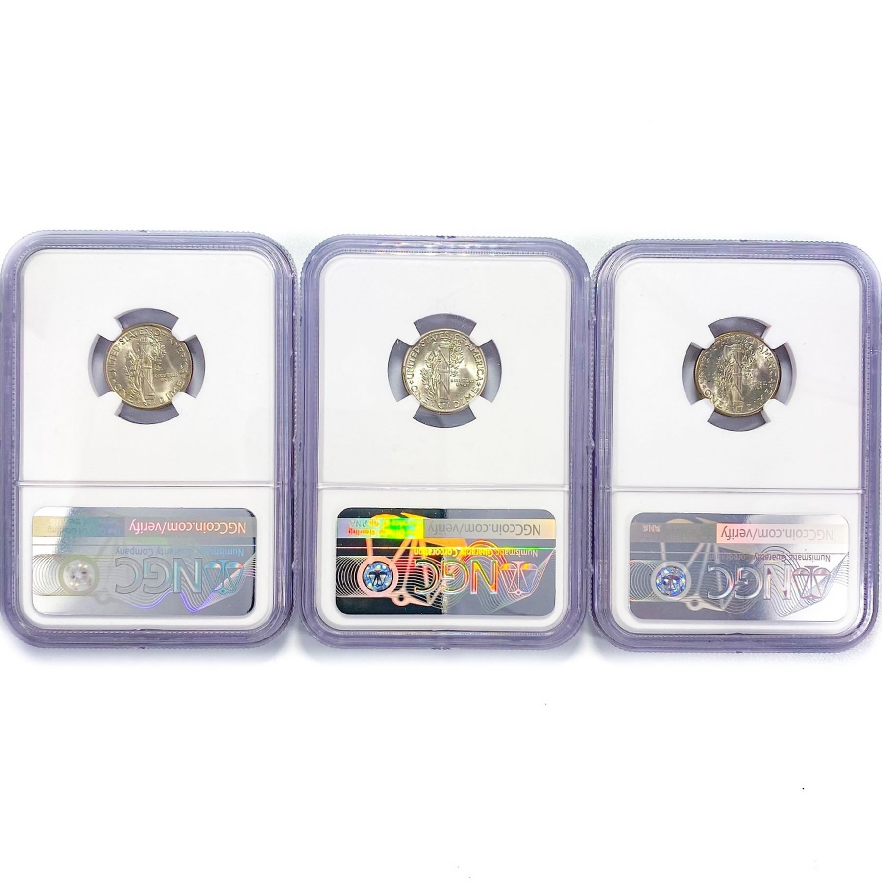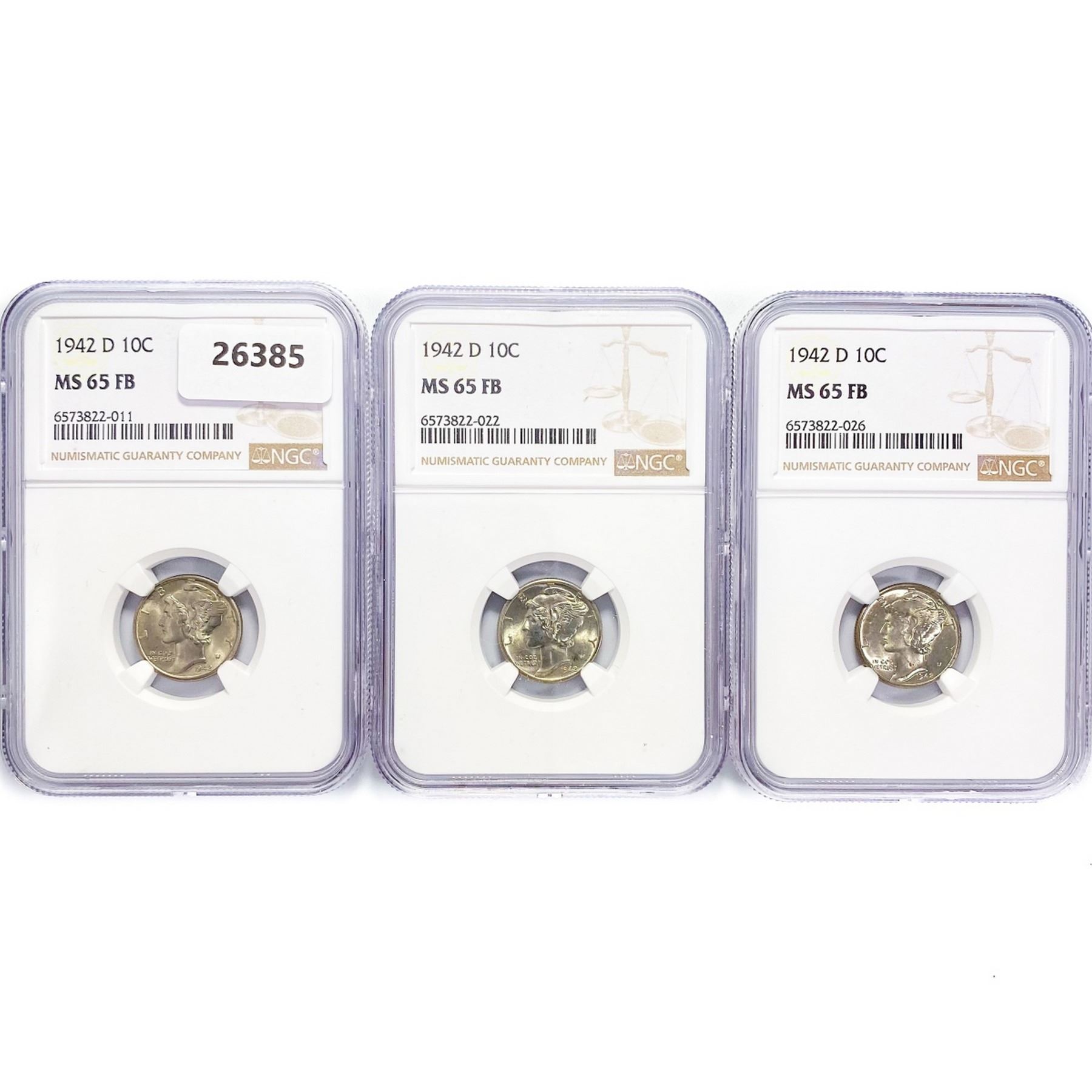 1942-D Set (3) Mercury Silver Dime NGC MS65 FB