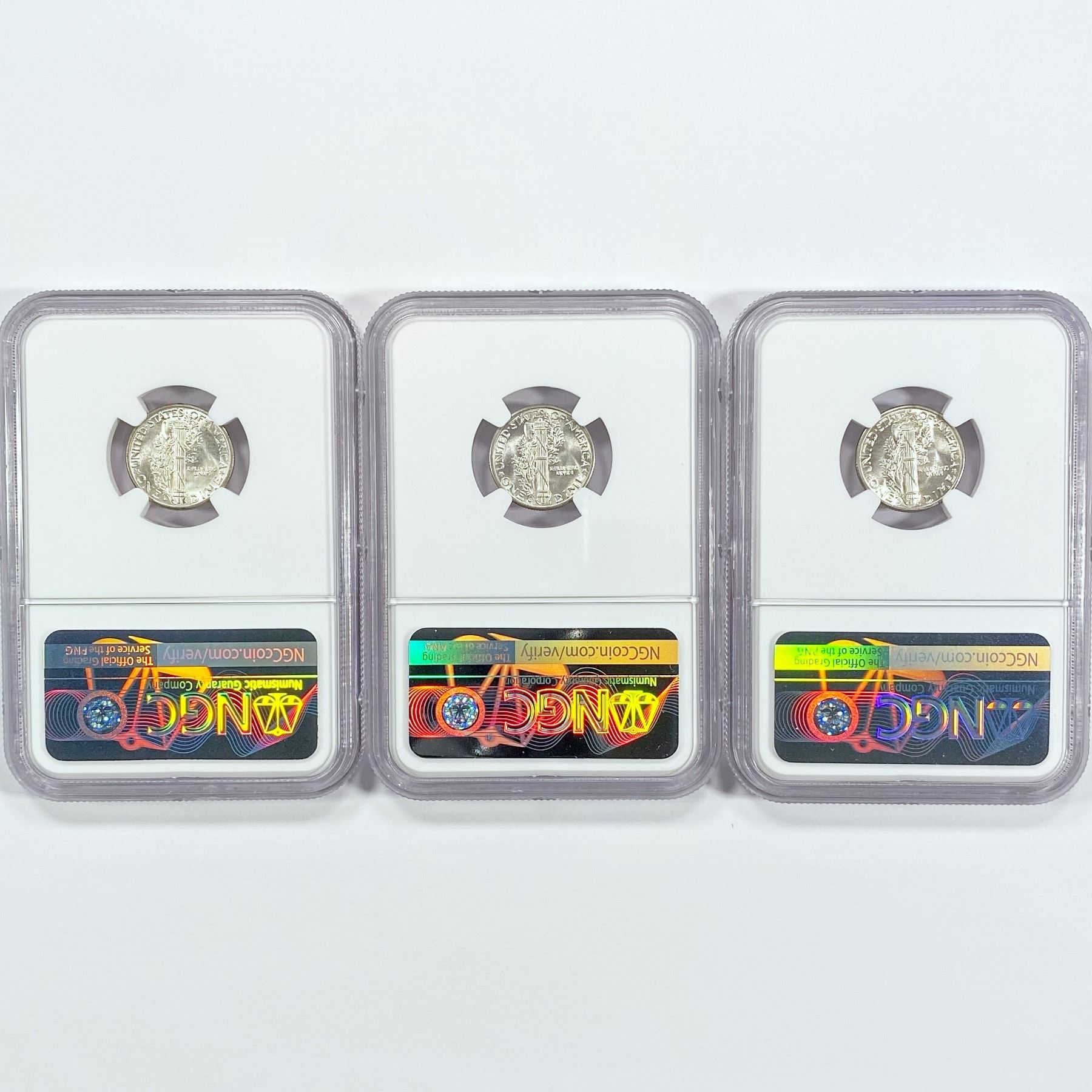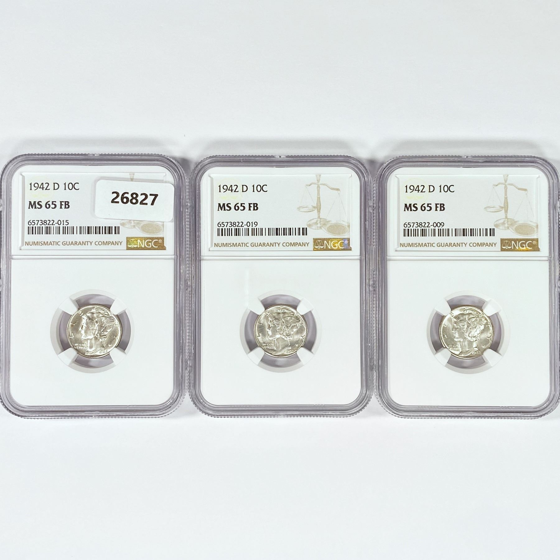 1942-D Set (3) Mercury Silver Dime NGC MS65 FB