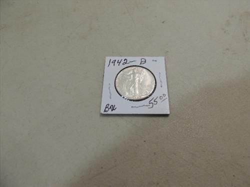1942-D UNC WALKING LIBERTY HALF DOLLAR. AS SHOWN. VIEW PICTURE FOR DETAIL.