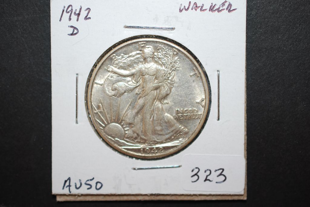 1942-D US Walking Liberty Half Dollar; AU50; EST. $15-20