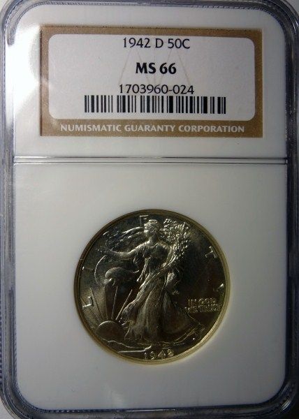 1942 D WALKING LIBERTY HALF DOLLAR NGC MS66 SUPER