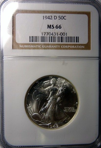 1942-D WALKING LIBERTY HALF DOLLAR NGC MS66 SUPER