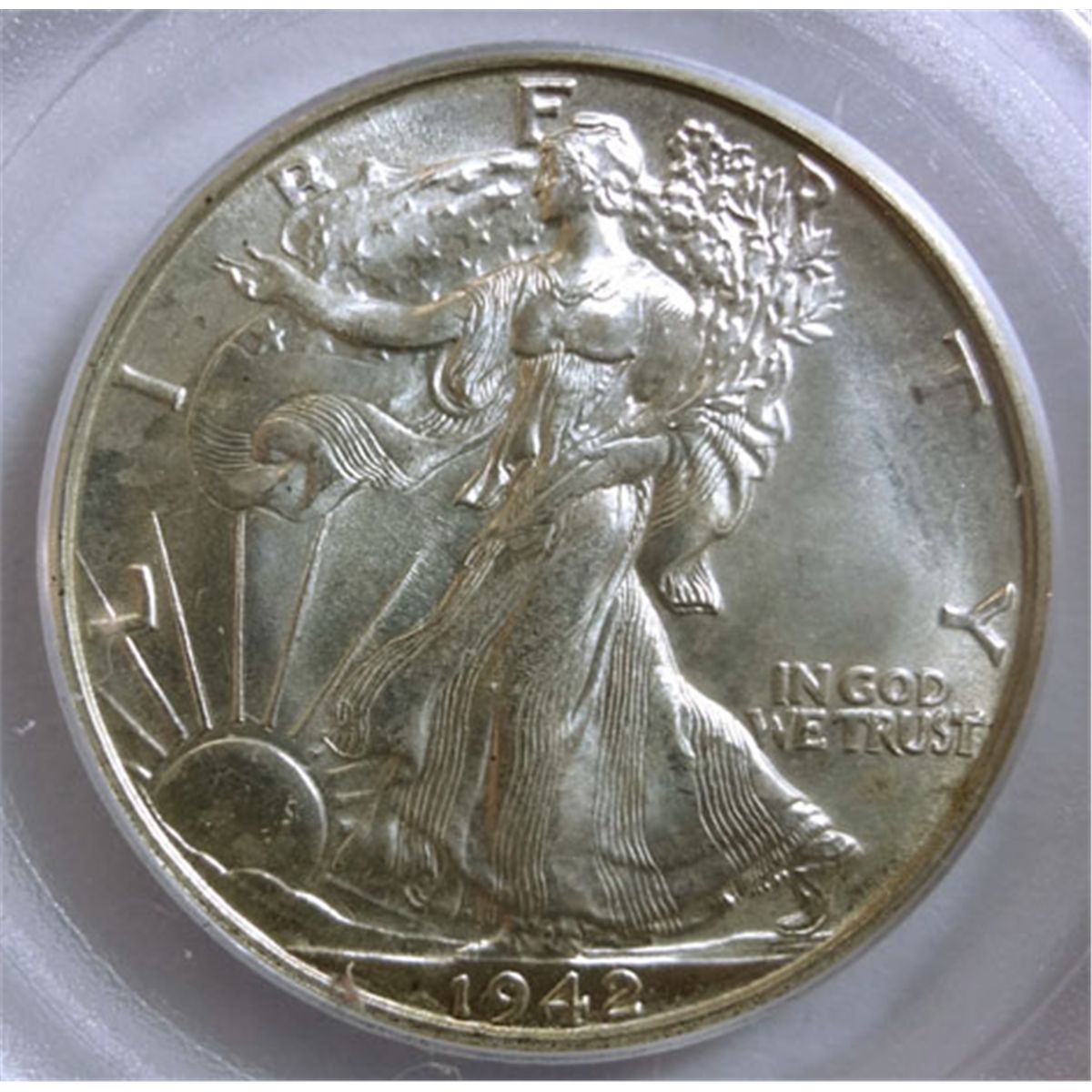 1942-D WALKING LIBERTY HALF DOLLAR PCGS MS-66