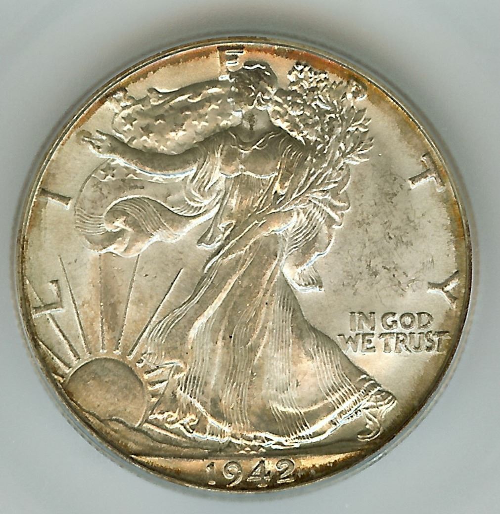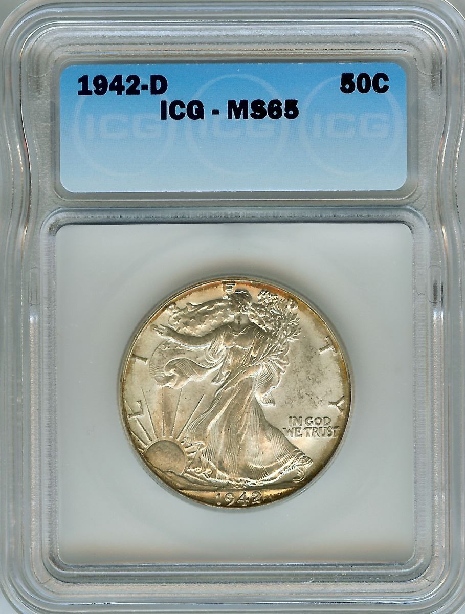1942-D WALKING LIBERTY SILVER 50 CENTS ICG MS65