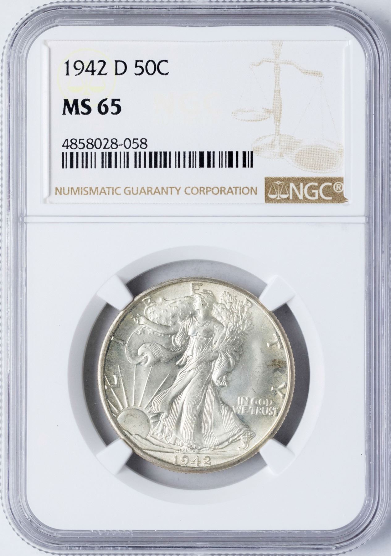 One 1942-D Walking Liberty Half Dollar Coin NGC MS65.