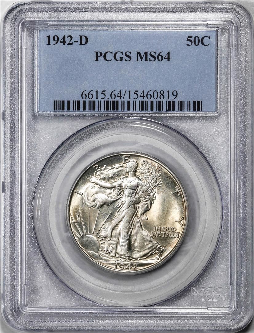 One 1942-D Walking Liberty Half Dollar Coin PCGS MS64. PCGS Graded.