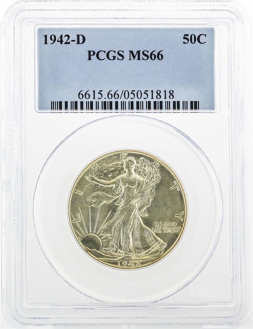 One 1942-D Walking Liberty Half Dollar Coin PCGS MS66. PCGS Graded.