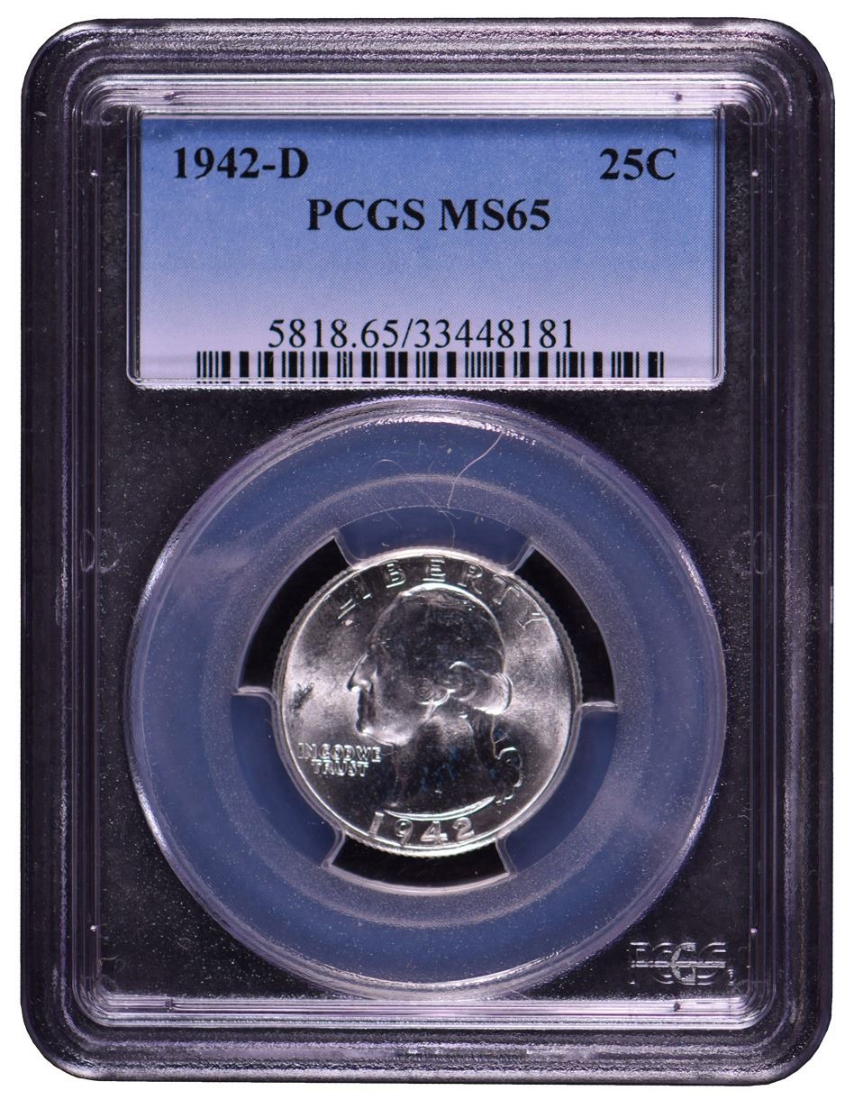 One 1942-D Washington Quarter Coin PCGS MS65.